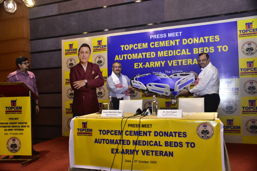 Topcem Cement, North East India’s leading cement brand, donated five advanced automated medical beds to Army veterans in collaboration with HQ 51 Sub Area, Narengi, as part of its continued commitment to social responsibility. The initiative aims to support veterans facing mobility challenges from service-related injuries. Speaking on the occasion, Dr. Anil Kapur, Senior President (Sales & Marketing), expressed honour in contributing to such a noble cause and highlighted this as Topcem Cement’s first partnership with the defence forces. The effort reflects the brand’s dedication to serving those who have served the nation and to building a stronger, more compassionate society.